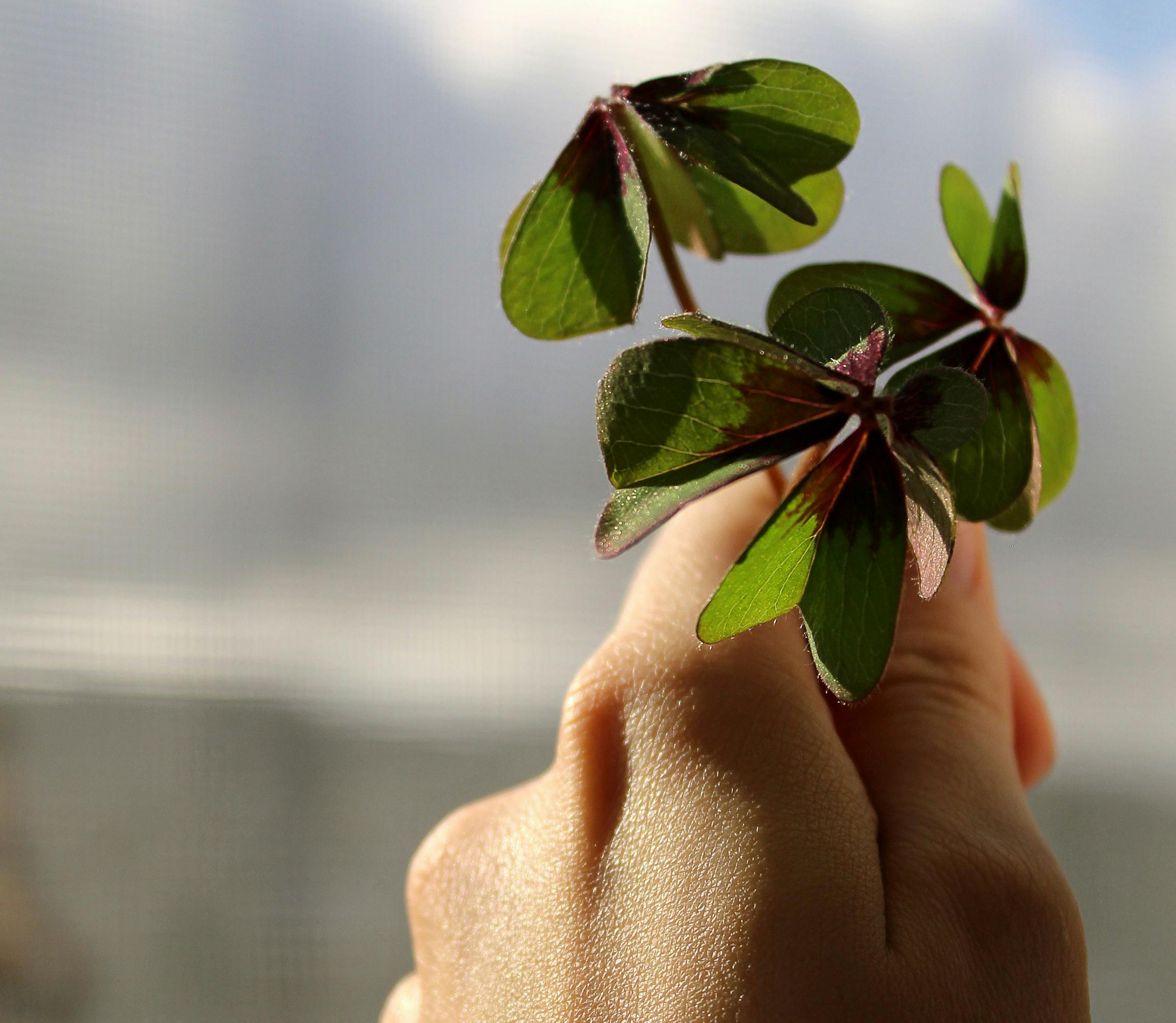 person holding a lucky four-leaf clover