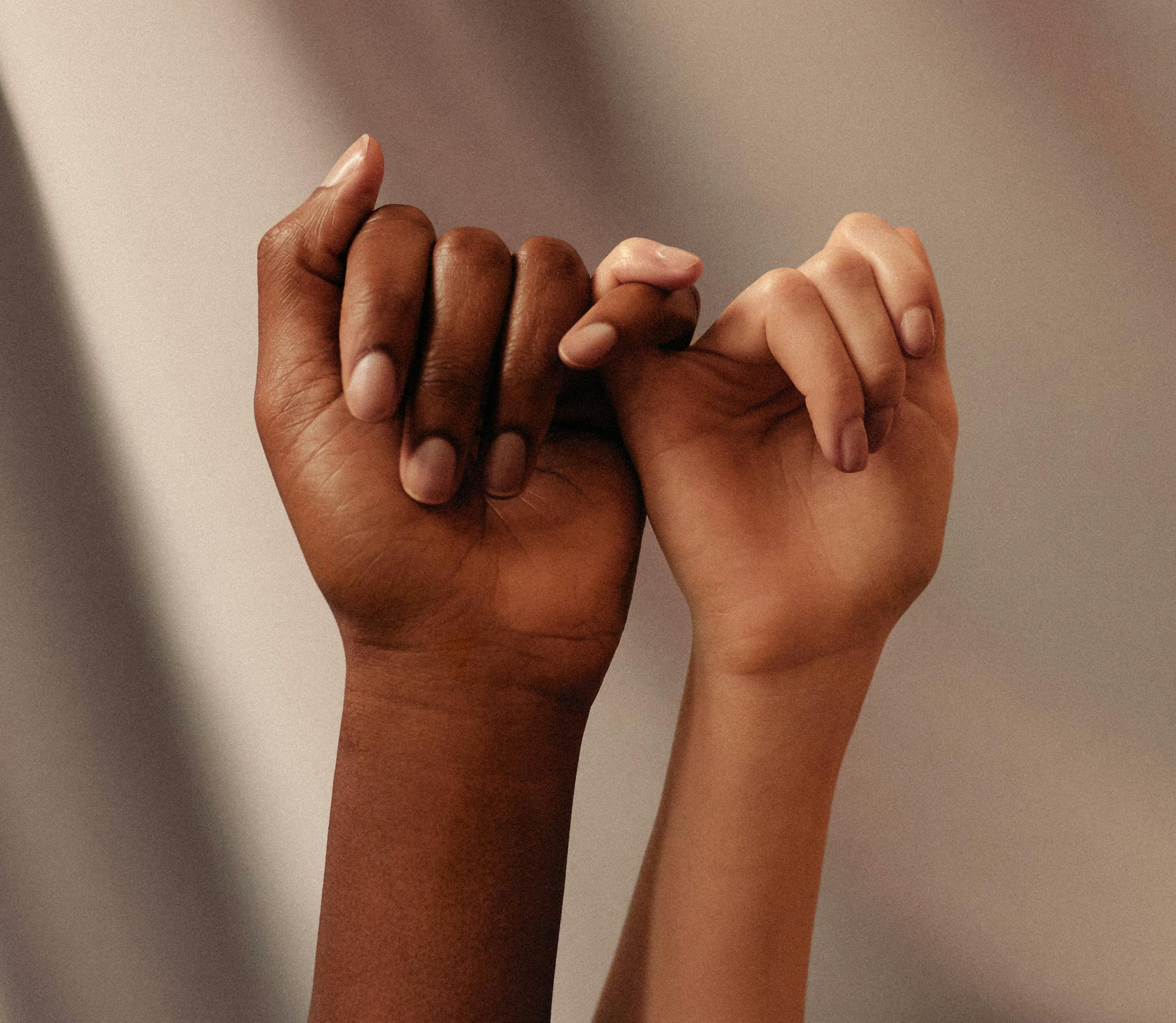 two people doing a pinky promise together